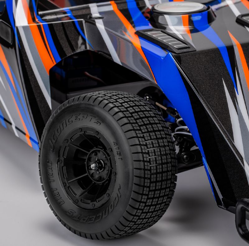 JConcepts adds options to the tire line-up with the introduction of the Dirt Trac tires specifically designed for dirt oval applications. Dirt Trac tires feature an arrangement of patterned blocks cut and sliced for delicate but proven performance. The orientation and make-up of the Dirt Trac tread is very traditional but sized appropriately and produced in a super soft compound to do a lot of the work. Large tread blocks resist wear, add forward bite and the spacing allows for a freer vehicle in tight and open oval track conditions.