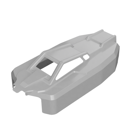 An aerodynamic and sleek design with ridged roof lines to keep the body stout under impact and airflow efficiently streams to the rear wing.