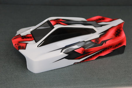 It is professionally custom airbrush painted for Rotor Ron by Chris Haigh. He has many years experience painting bodies and does awesome work, this is no exception. His skills were put to the test and the end result is nothing short of amazing! This body will turn heads and make you stand out from the crowd and also allow you to see your car on track easier. The pics do not do the paint work justice.