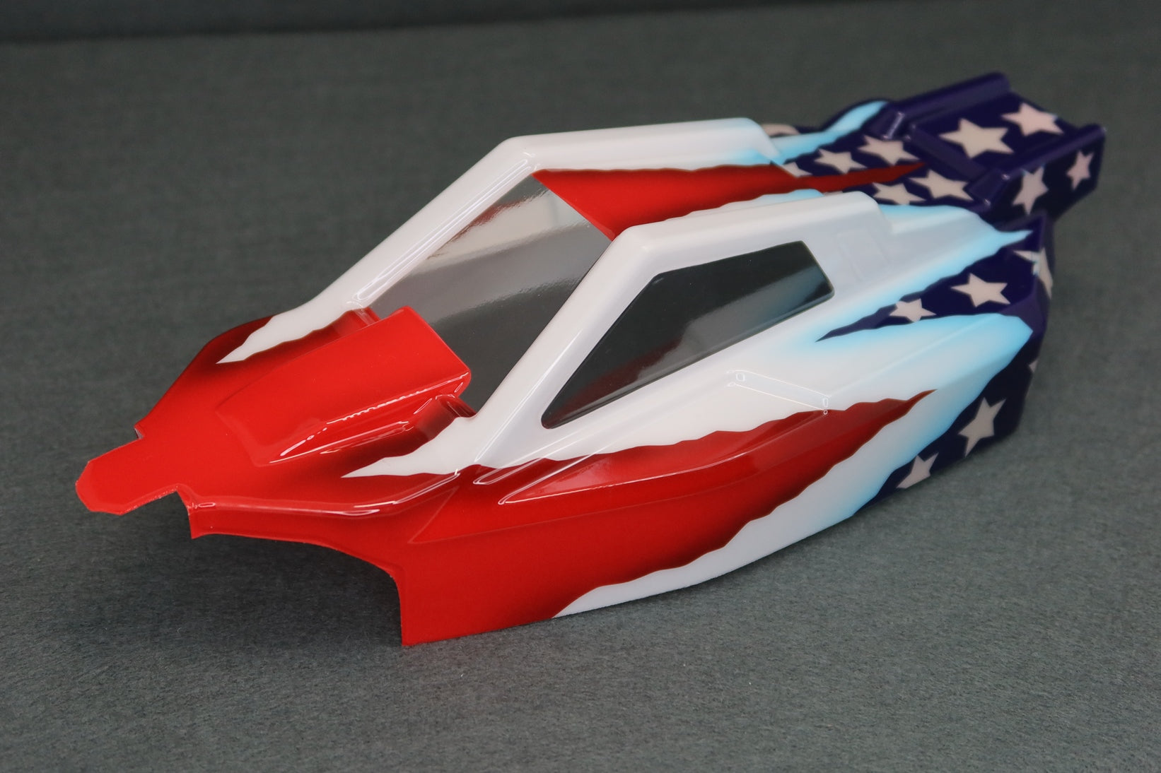 It is professionally custom airbrush painted for Rotor Ron by Bryan Johnston. He has many years experience painting bodies and does awesome work, this is no exception. His skills were put to the test and the end result is nothing short of amazing! This body will turn heads and make you stand out from the crowd and also allow you to see your car on track easier. The pics do not do the paint work justice.