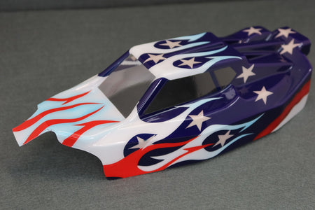 This body is part of the Ron's Reserve Series from Rotor Ron. The series is made up of bodies that are above and beyond the normal design and painting of an RC body. I personally love a great looking body on the track so many of these ideas are from me. There is much more time involved in painting a body like this versus an average multi-color body.