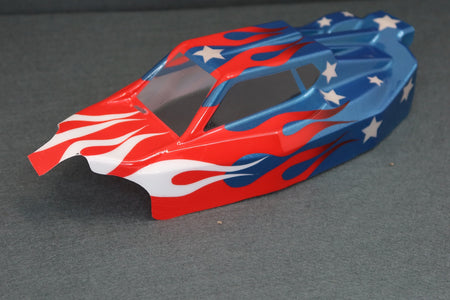 It is professionally custom airbrush painted for Rotor Ron by Bryan Johnston. He has many years experience painting bodies and does awesome work, this is no exception. His skills were put to the test and the end result is nothing short of amazing! This body will turn heads and make you stand out from the crowd and also allow you to see your car on track easier. The pics do not do the paint work justice.
